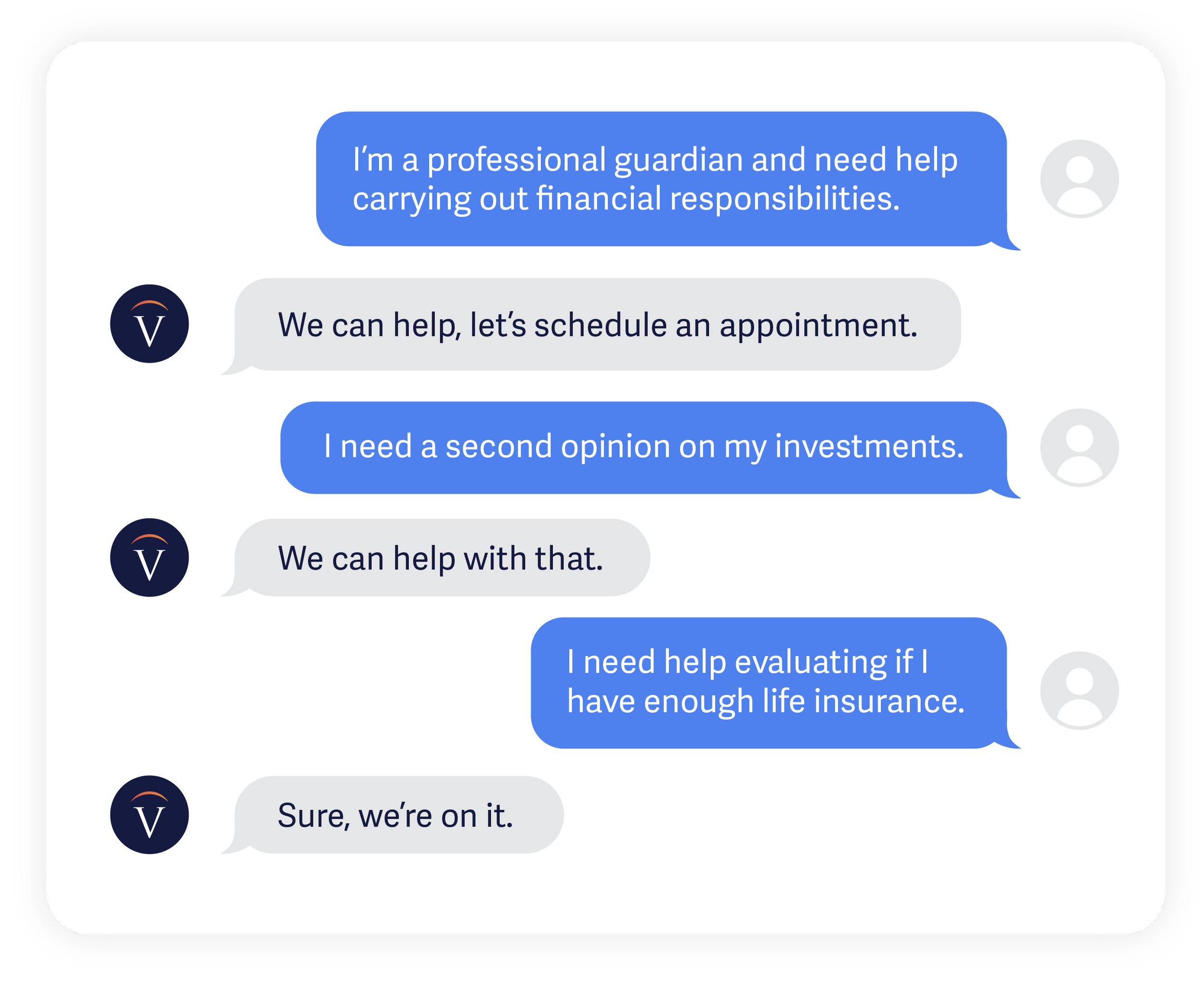 Perhaps you need help evaluating if you have enough life insurance, aren't sure how to allocate your investments, or need assistance determining which savings vehicles can best help you fund higher education. Maybe you're contemplating making a major purchase and need help analyzing the details, or you're a professional guardian seeking expert advice to carry out your financial responsibilities. No matter your specific challenge, our hourly consulting services can help problem-solve so you can feel confident you’re making the best decisions possible.